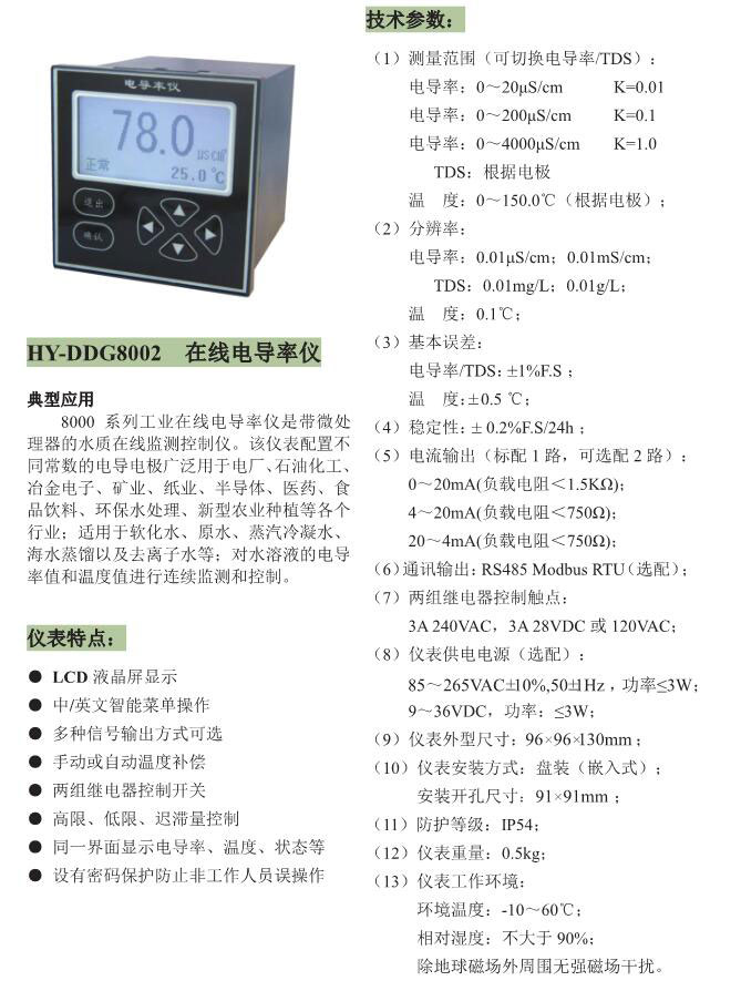 HY-DG8002在线电导率仪